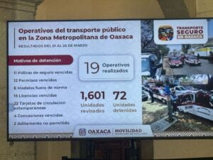 La Secretaría de Movilidad de Oaxaca (Semovi) lanzó una serie de operativos en la zona metropolitana de Oaxaca, dejando un saldo de 72 unidades de transporte público detenidas entre el 1 y el 26 de marzo.