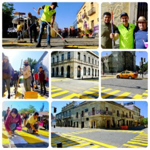 El Tequio vecinal se llevó a cabo en calles emblemáticas como Macedonio Alcalá, García Vigil, Morelos, Abasolo, Matamoros y sus entronques, donde se intervinieron un total de ocho cruceros viales con pintura para paso peatonal, con el objetivo de mejorar la seguridad y movilidad en esta importante zona.
