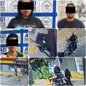 Oaxaca de Juárez a 17 de abril de 2025. – La Fiscalía General del Estado de Oaxaca (FGEO) tiene a disposición del agente del Ministerio Público a tres personas detenidas, dos mujeres identificadas como B. R. C., alias “Brisa”, y J. L. M., así como un hombre identificado como J. M. H. H., alias “Zamudio”, capturados cuando intentaban huir luego de la comisión de un robo con violencia cometido en una sucursal de la tienda OXXO, en la Mixteca, hechos en los que resultó lesionado un elemento de la Policía Municipal al momento de una agresión con disparos de arma de fuego.