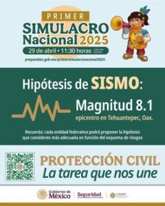 El próximo martes 29 de abril a las 11:30 h se realizará el Simulacro Nacional 2025, que recreará un sismo de magnitud 8.1 con epicentro en el Istmo de #Tehuantepec, informó el titular de la Coordinación Estatal de Protección Civil y Gestión de Riesgos Manuel Maza Sánchez.