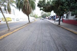 Oaxaca de Juárez, Oax., 1 de mayo de 2025.- La Secretaría de Infraestructuras y Comunicaciones (SIC) inició trabajos de reencarpetamiento en el boulevard Eduardo Vasconcelos, en el tramo del estadio de béisbol al cruce de la calle Curtidurías, donde se realizan labores de fresado, para posteriormente limpiar y colocar pavimento nuevo.