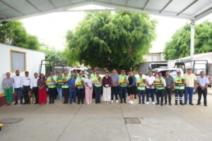 El equipo entregado incluye uniformes impermeables, botas, extintores de polvo químico seco y de dióxido de carbono, arneses, cuerdas, motosierras, cortadores de ramas, mangueras, bombas de extracción de agua, entre otros insumos fundamentales para desempeñar sus labores en condiciones de seguridad y eficiencia.