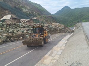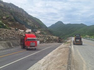 Oaxaca de Juárez, Oax. 20 de junio 2025. El Consejo Estatal de Protección Civil informa que, la Autopista 190 D Mitla – Tehuantepec continúa cerrada a la circulación por presentar deslaves tras el impacto del huracán Erick.