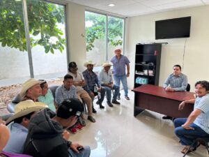 La reunión derivó de los hechos ocurridos el pasado martes 24 de junio de 2025, cuando un ganadero se percató que un grupo de personas se robó cabezas de ganado en el municipio de San Blas Atempa.