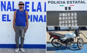 Durante recorridos de seguridad y vigilancia sobre la calle Guadalupe Victoria y Galeana, en la Tercera Sección del municipio El Espinal, elementos de la Policía Estatal interceptaron a un individuo en posesión de diversos envoltorios con presunta droga.